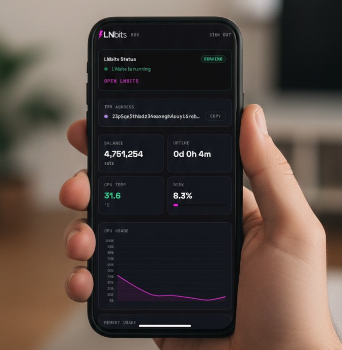 Access the admin panel to manage and monitor your LNbitsBox.