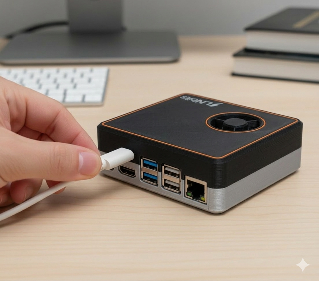 Plug LNbitsBox into power and your router (or Wi-Fi). That's all the hardware setup there is.